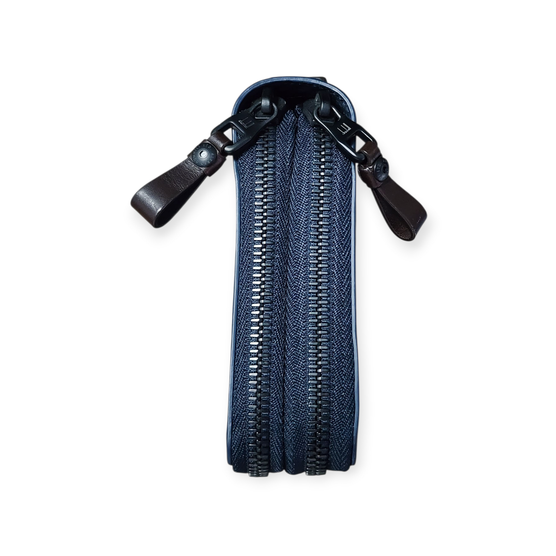 Authentic Dunhill Navy Blue Chassis Leather Double-Zip Organizer Pouch Wallet